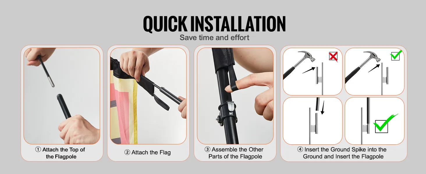 Onze verenvlaggenmast is bestand tegen intens zonlicht en hevige regen. Gemaakt van een hoogwaardige aluminiumlegering en glasvezel, is hij lichtgewicht, draagbaar en zeer goed bestand tegen buigen en corrosie.