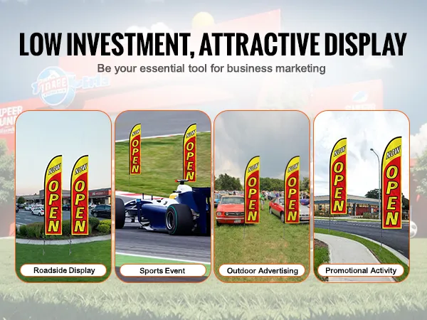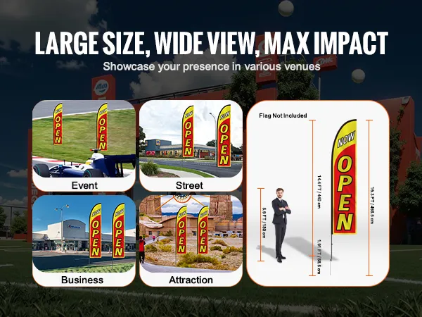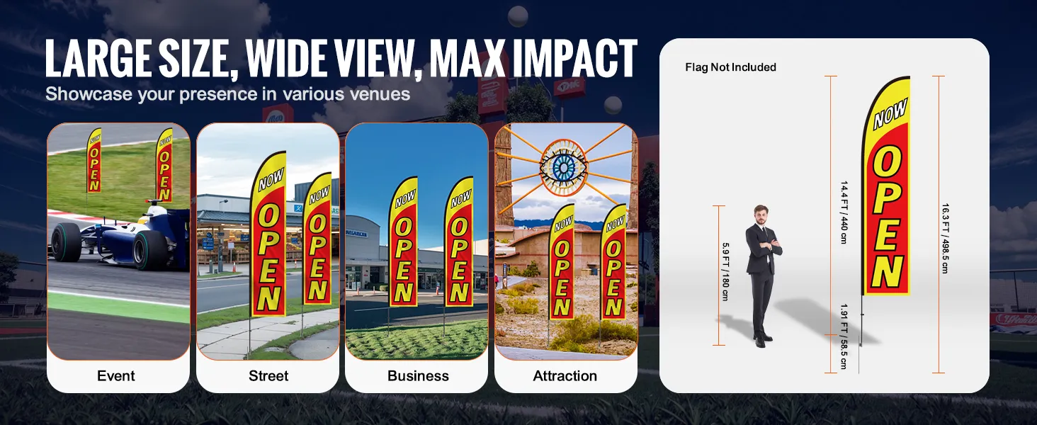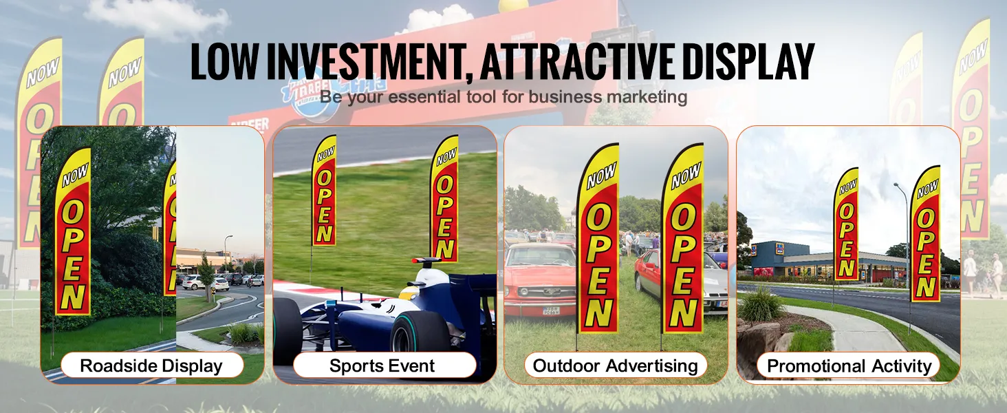 Cost-Effective Marketing Tool: Compatible with various feather or teardrop flags, these open signs for advertising suit various commercial and event settings. It is a cost-effective choice for increasing brand visibility in outdoor activities, retail storefronts, or busy streets.