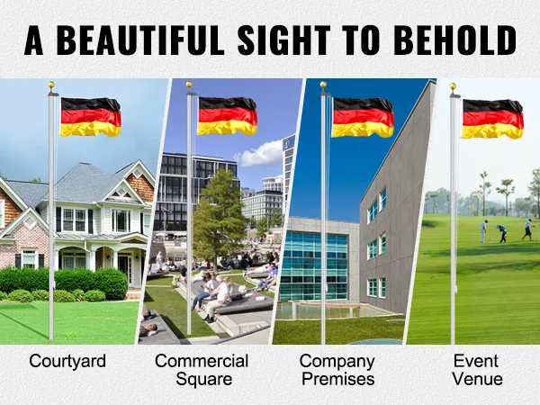Whether in a yard, commercial plaza, or corporate setting, our aluminum alloy flagpole adds a special ambiance to your environment. Experience patriotic pride amidst beautiful scenery and showcase your glory.