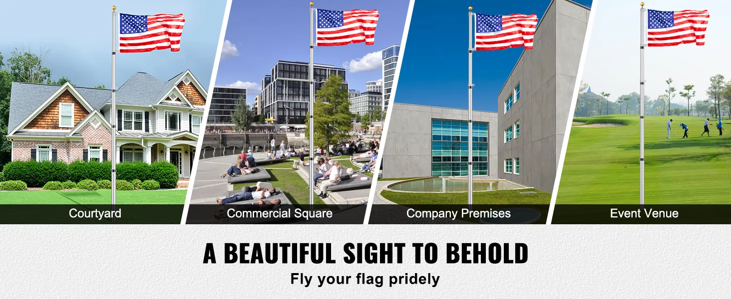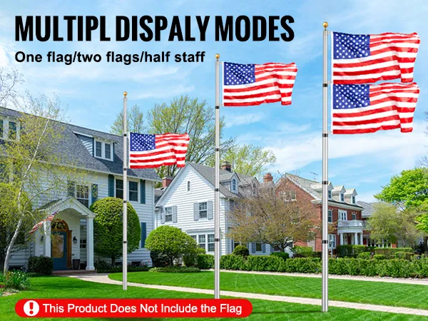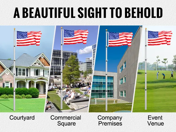 Meerdere weergaveopties: onze telescopische vlaggenmast ondersteunt het weergeven van 1 vlag, 2 vlaggen en zelfs halfstokvlaggen, geschikt voor verschillende gebruiksscenario's. Of het nu gaat om binnenplaatsen, pleinen of commerciële ruimtes, ons product biedt de meest geschikte displayopties voor uw behoeften.