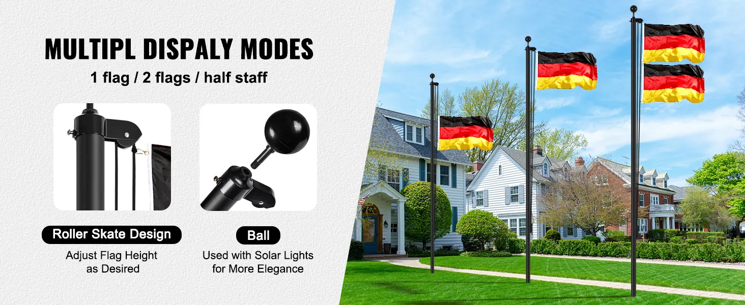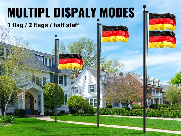 VEVOR 25FT Detachable Flagpole Kit, Heavy Duty Aluminum Alloy Flag Pole Kit in Ground for Outdoor, 3 Display Modes Flagpole with Professional Accessories, German Flag, Black