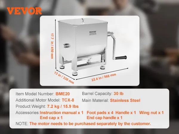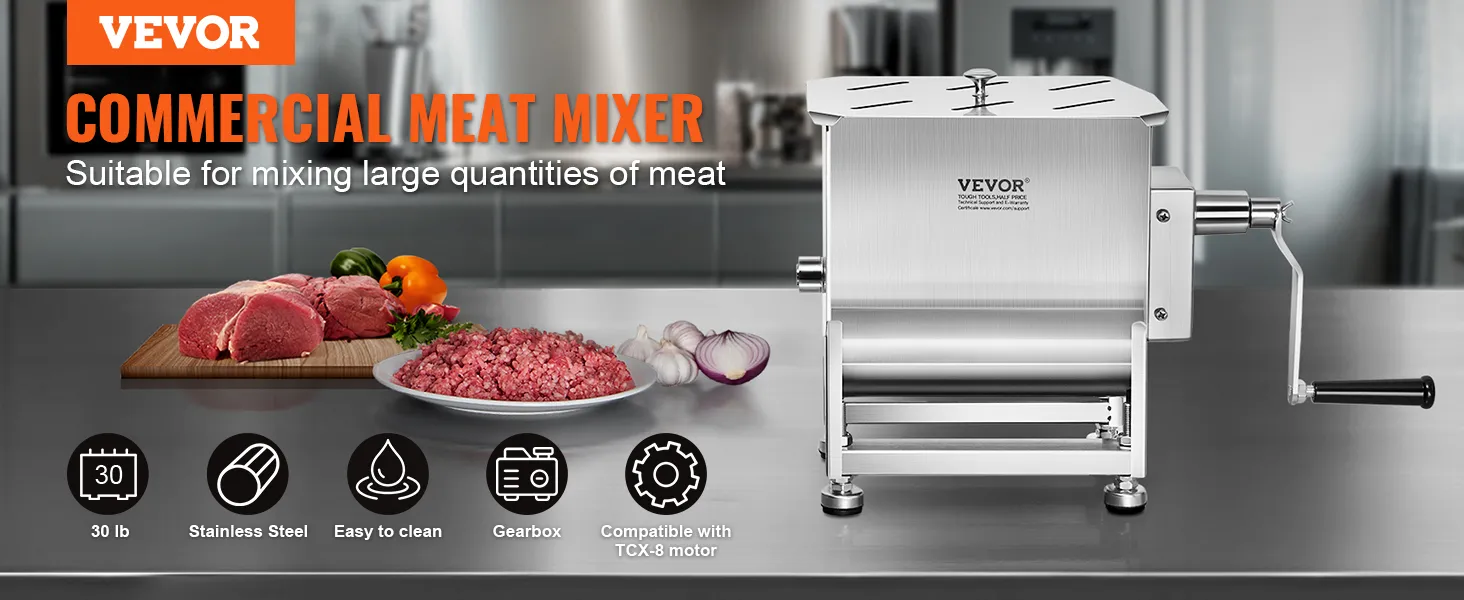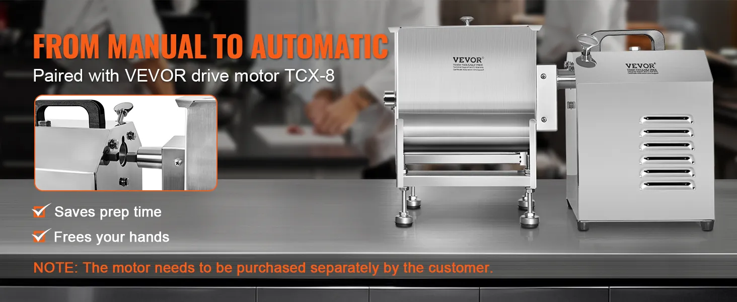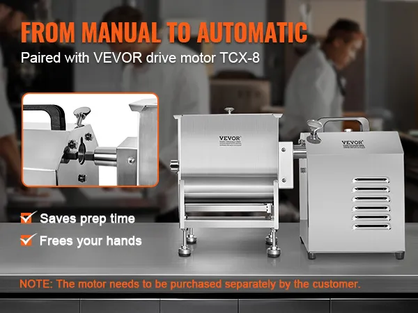 Gearbox Structure: This manual meat mixer features a gearbox structure design that makes operation more labor-saving. It can also be paired with the VEVOR drive motor TCX-8 to become an electric mixer, freeing your hands and allowing easy operation by a single person.