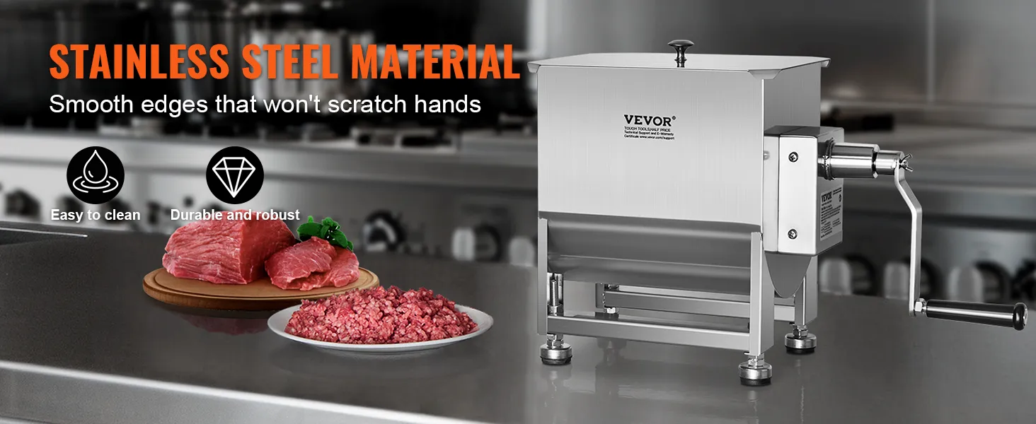 The entire manual meat mixer is made of stainless steel, with upgraded welding technology providing smooth and flat edges inside and out, preventing scratches.