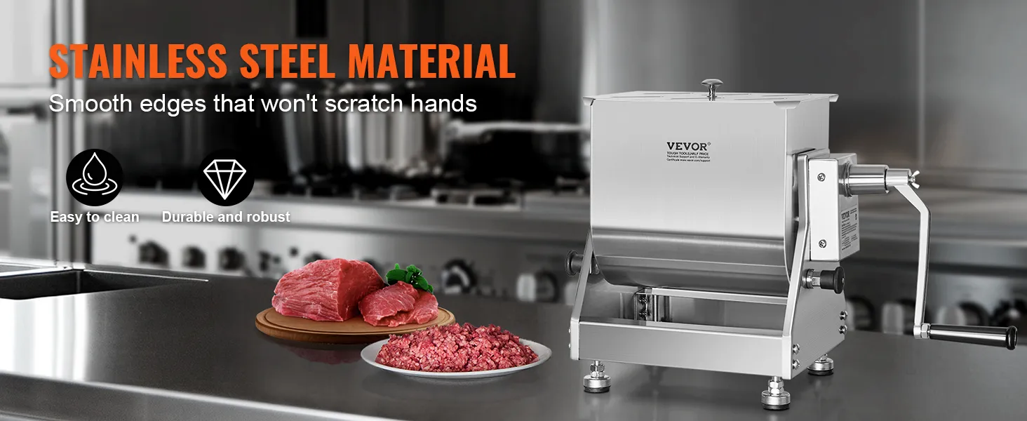 The entire manual meat mixer is made of stainless steel, with upgraded welding technology providing smooth and flat edges inside and out, preventing scratches.