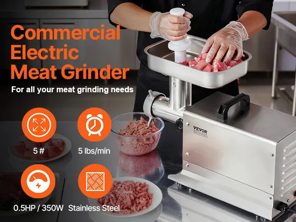 The 300W pure copper motor can grind 5 lbs of meat per minute. The electric meat grinder can operate continuously without interruption, making it ideal for large-scale commercial meat grinding needs.