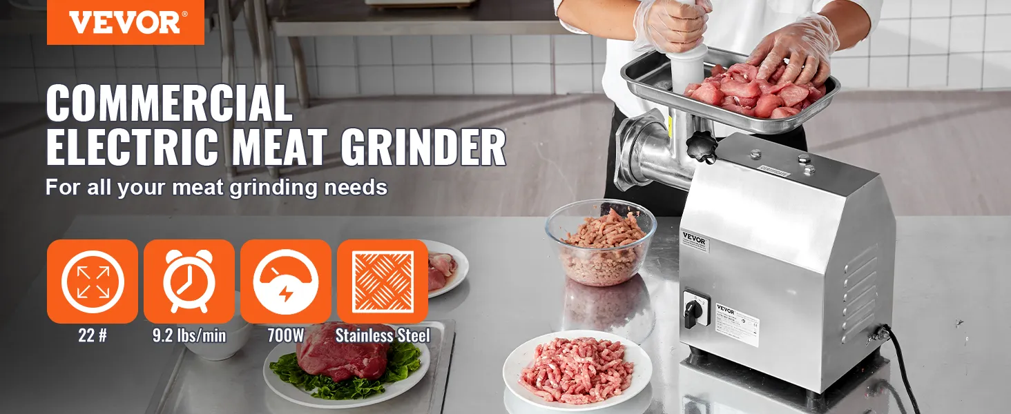 The 700W pure copper motor can grind 9.2 lbs of meat per minute. The electric meat grinder can operate continuously without interruption, making it ideal for large-scale commercial meat grinding needs.