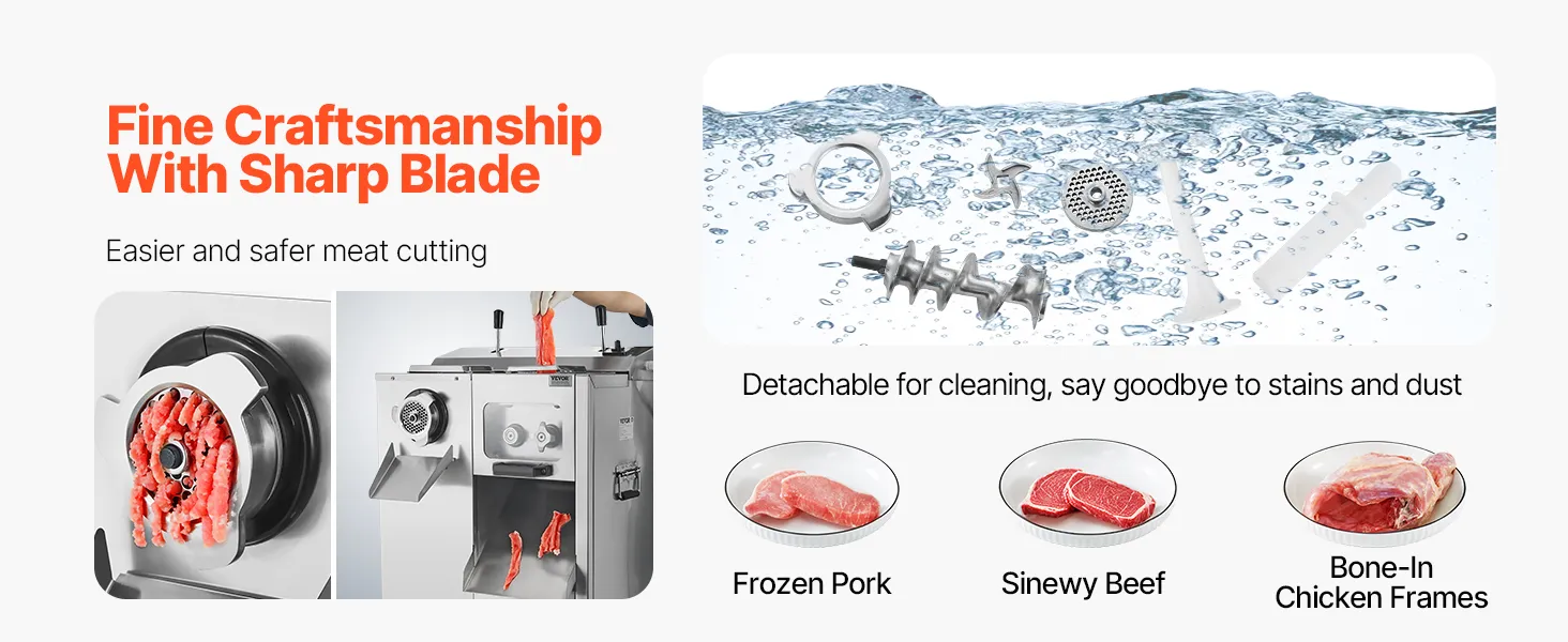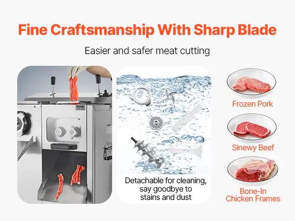 • Detachable Design: The blade is detachable for easy cleaning. Designed for quick disassembly, it allows for efficient cleaning of meat scraps, grease, dust, and hair, saving you time and effort while ensuring a clean cooking environment.