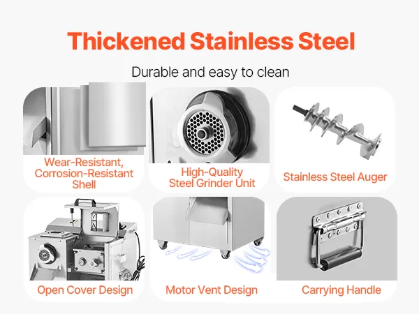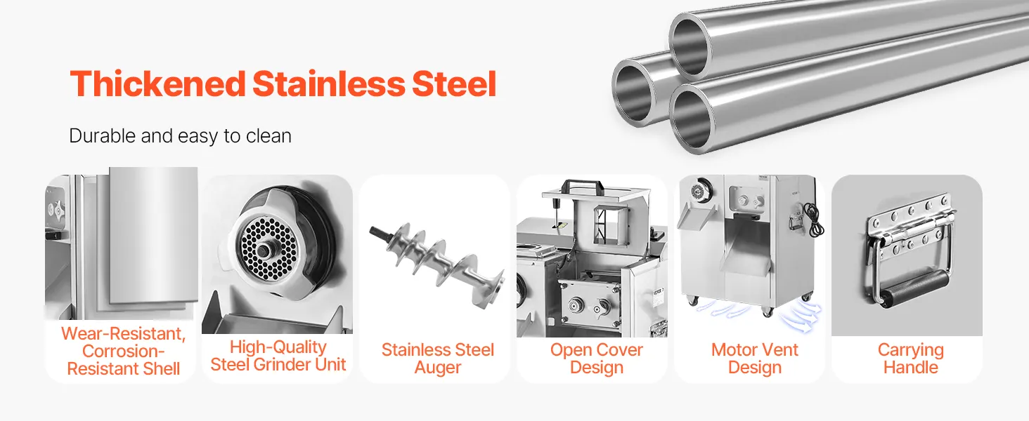 • Ideal for Commercial Use: Made with thick stainless steel, the meat grinder body is sturdy and durable, easy to clean, and suitable for various settings such as kitchens, restaurants, and companies. It is the ideal helper for grinding and cutting tasks. Whether you want to make sausages or meat patties, this grinder and cutter offers multiple options for your culinary creations.