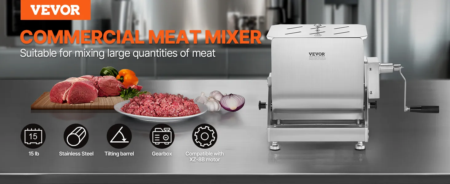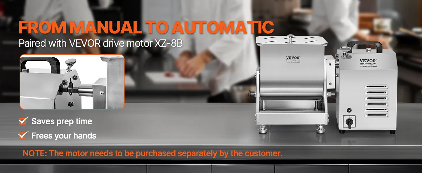 Gearbox Structure: This meat mixer features a gearbox design, making operation more effortless. It is compatible with the VEVOR drive motors XZ-8B, allowing for hands-free operation, so one person can easily handle the task.
