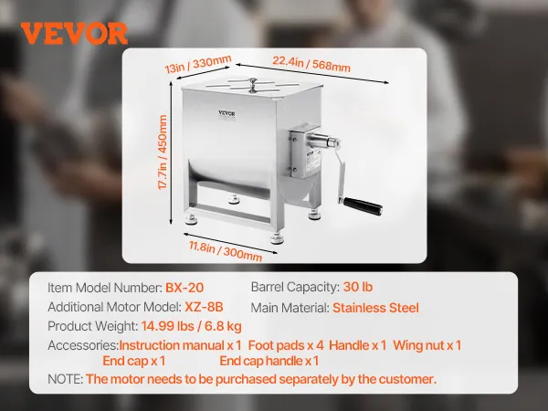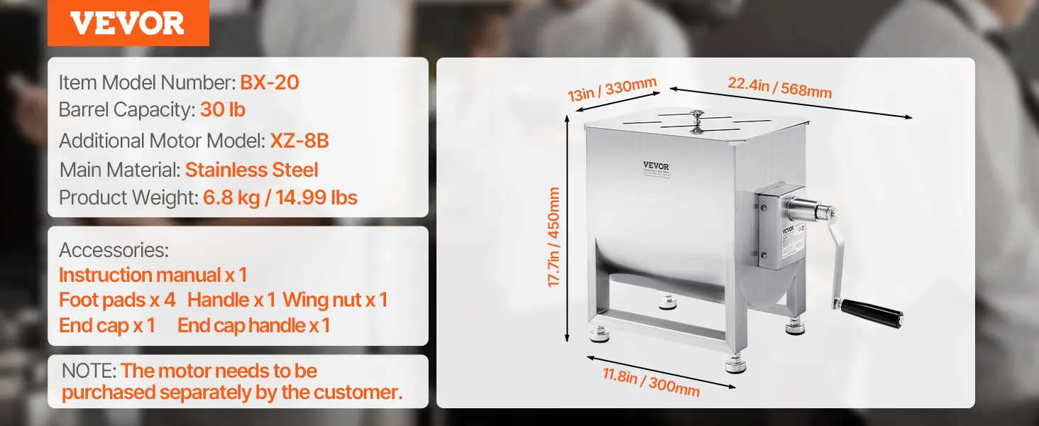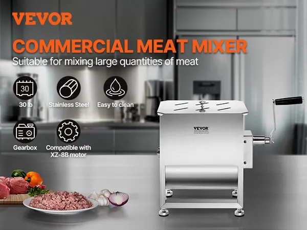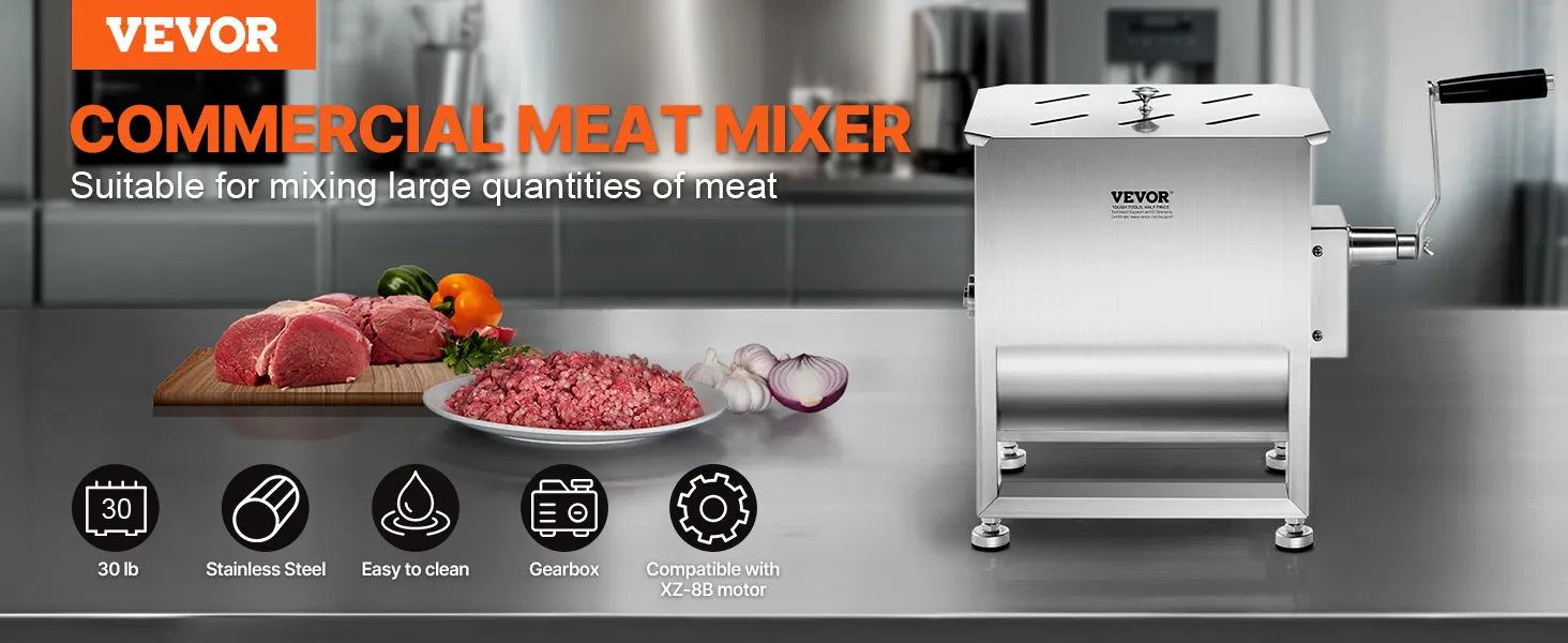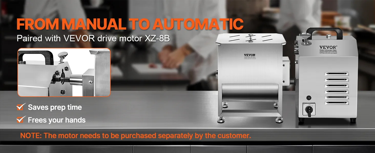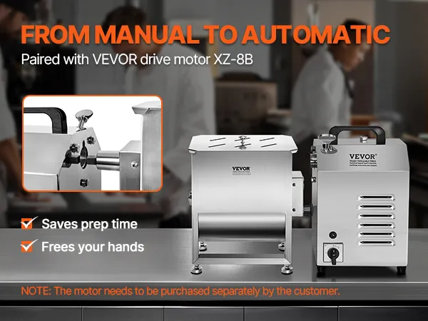 Gearbox Structure: This meat mixer features a gearbox design, making operation more effortless. It is compatible with the VEVOR drive motors XZ-8B, allowing for hands-free operation, so one person can easily handle the task.