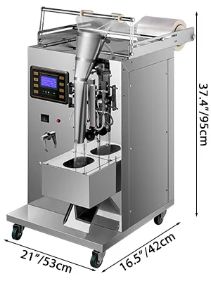 Volautomatisch: roeren, vullen, sealen en snijden. De machine heeft een dubbele pompkracht met meer pompkracht en loopt soepel en met weinig geluid.