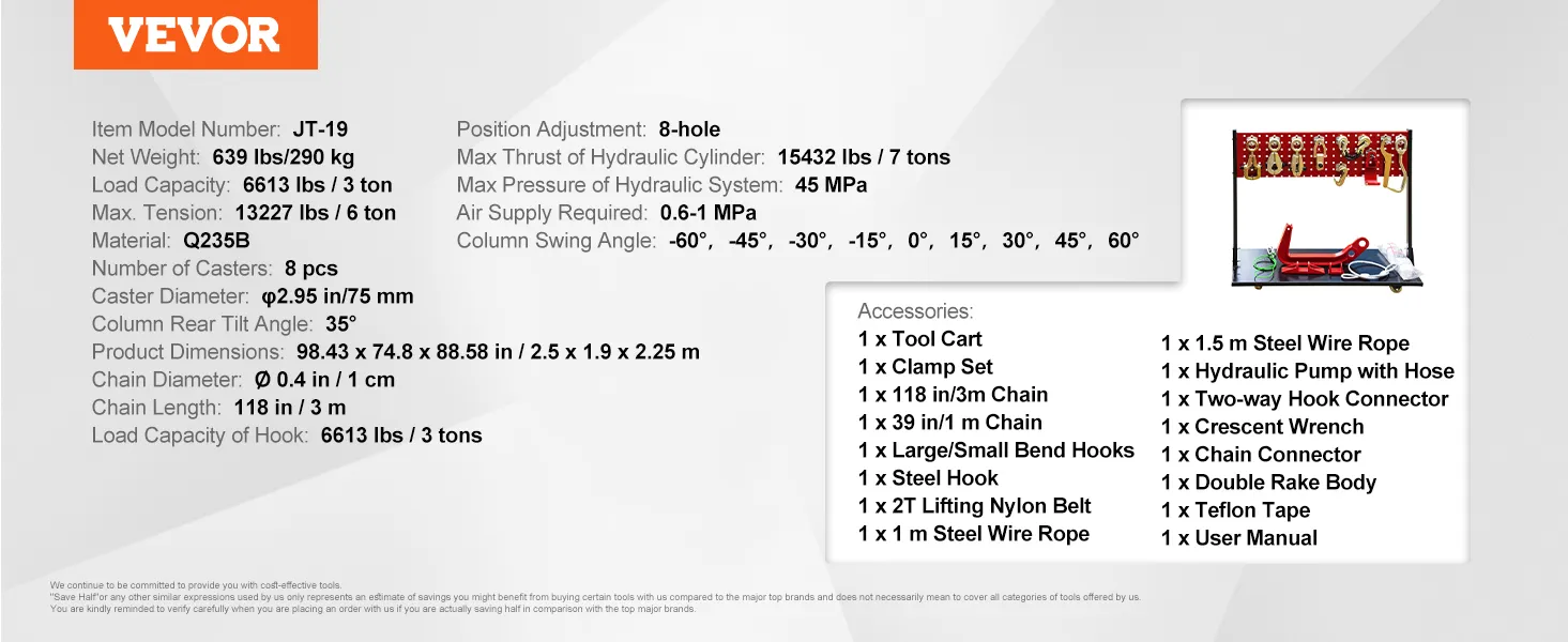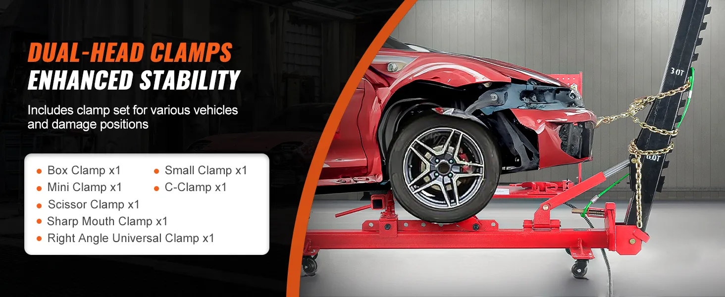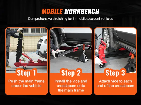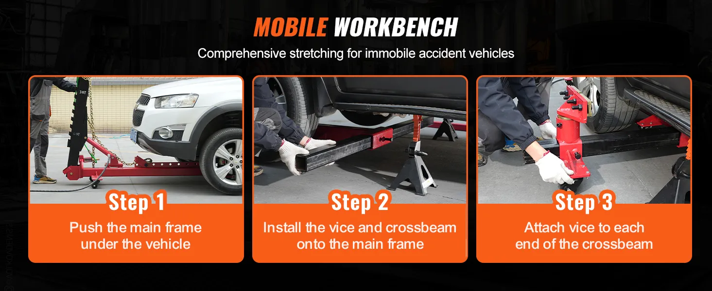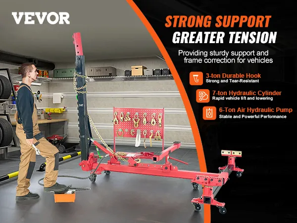 With its powerful 3-ton pulling force, this frame puller efficiently repairs body deformations and damage, ensuring quick and reliable repairs. It is an indispensable tool for restoring accident-damaged vehicles.
