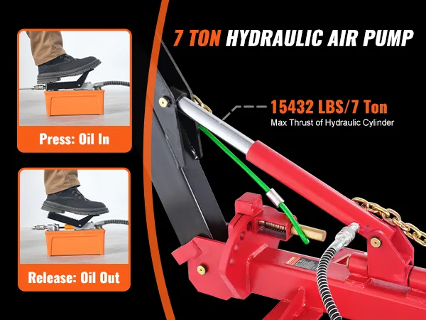 The pneumatic pump with foot switch allows for easy and precise adjustment of the rod extension. This design makes operation significantly more effortless and precise, reducing manual effort and increasing overall efficiency.