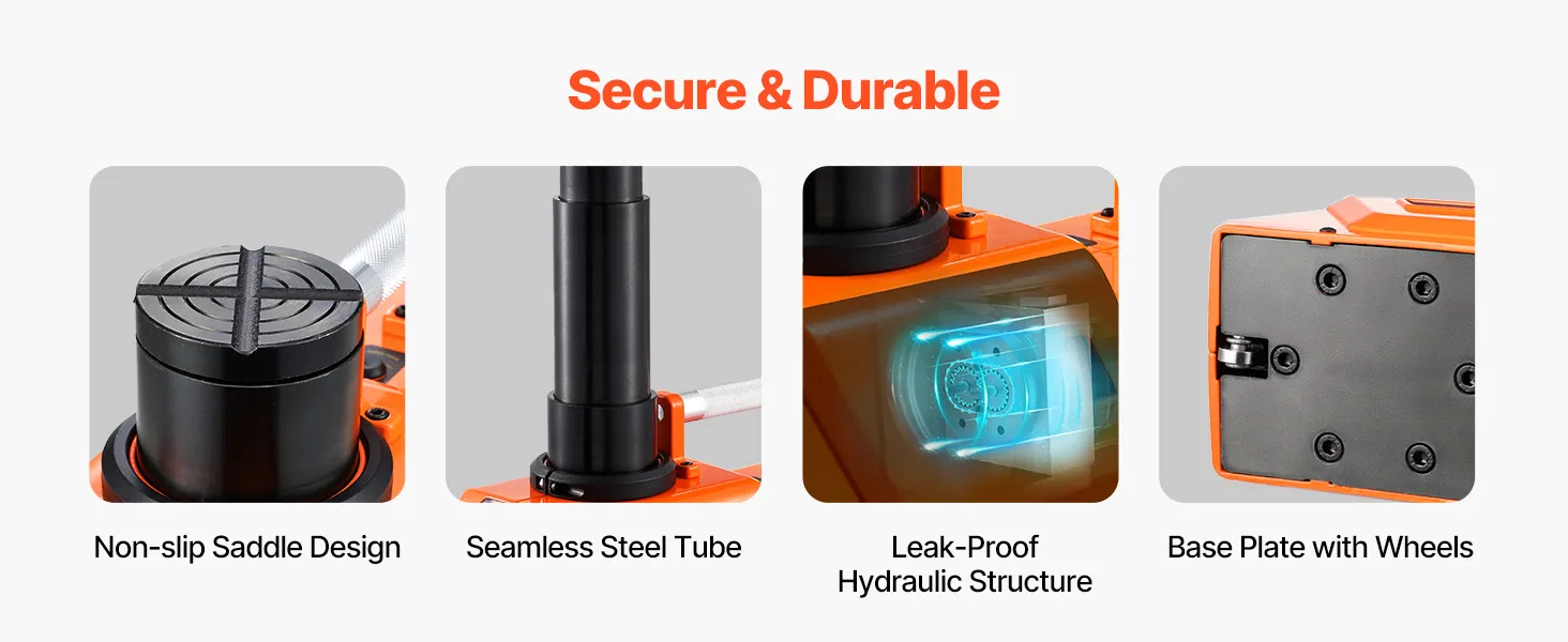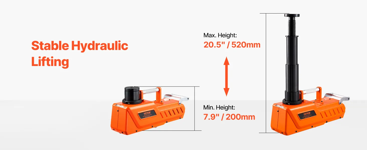 Groter hefbereik: Hydraulisch hefbereik: 7,9-20,5 inch (200-520 mm), uitgerust met een bedrade afstandsbediening om eenvoudig de gewenste hoogte aan te passen. Het is handiger omdat u gemakkelijk toegang heeft tot voertuigen met verschillende bodemvrijheid, waardoor het wisselen van banden sneller gaat.