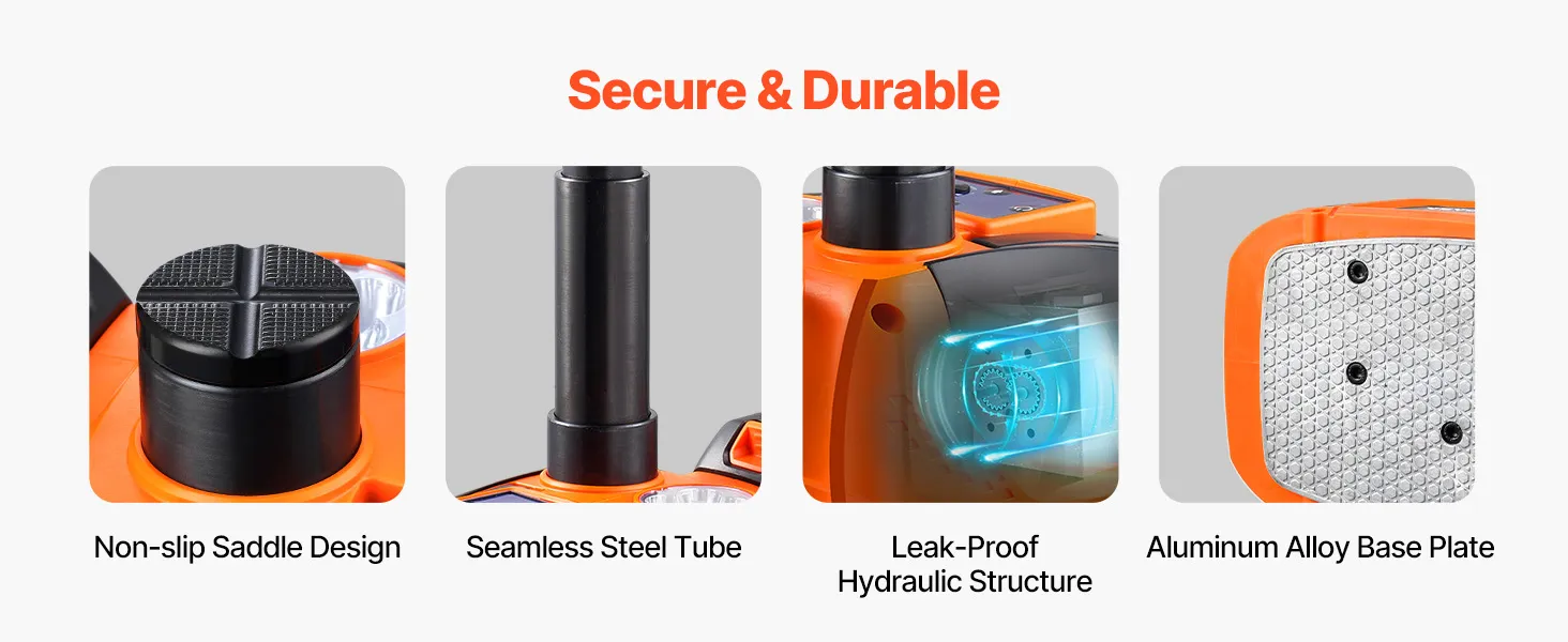 Security Assurance: The top head is designed with a non-slip texture to securely hold the vehicle, ensuring it stays in place during lifting and lowering. This provides enhanced stability and security for the user. For your safety, do not work under the vehicle while it is raised.