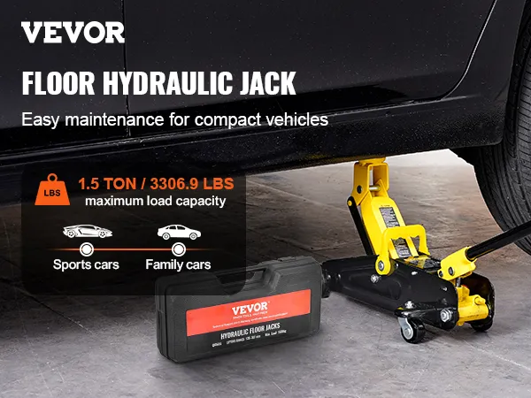 Maximaal gewicht van 1,5 ton: onze krik kan gemakkelijk tot 1,5 ton (3306,9 lbs) worden opgetild, waardoor hij perfect is voor sportwagens en gezinssedans. Ideaal voor doe-het-zelvers, maakt het optillen van uw voertuig een fluitje van een cent.