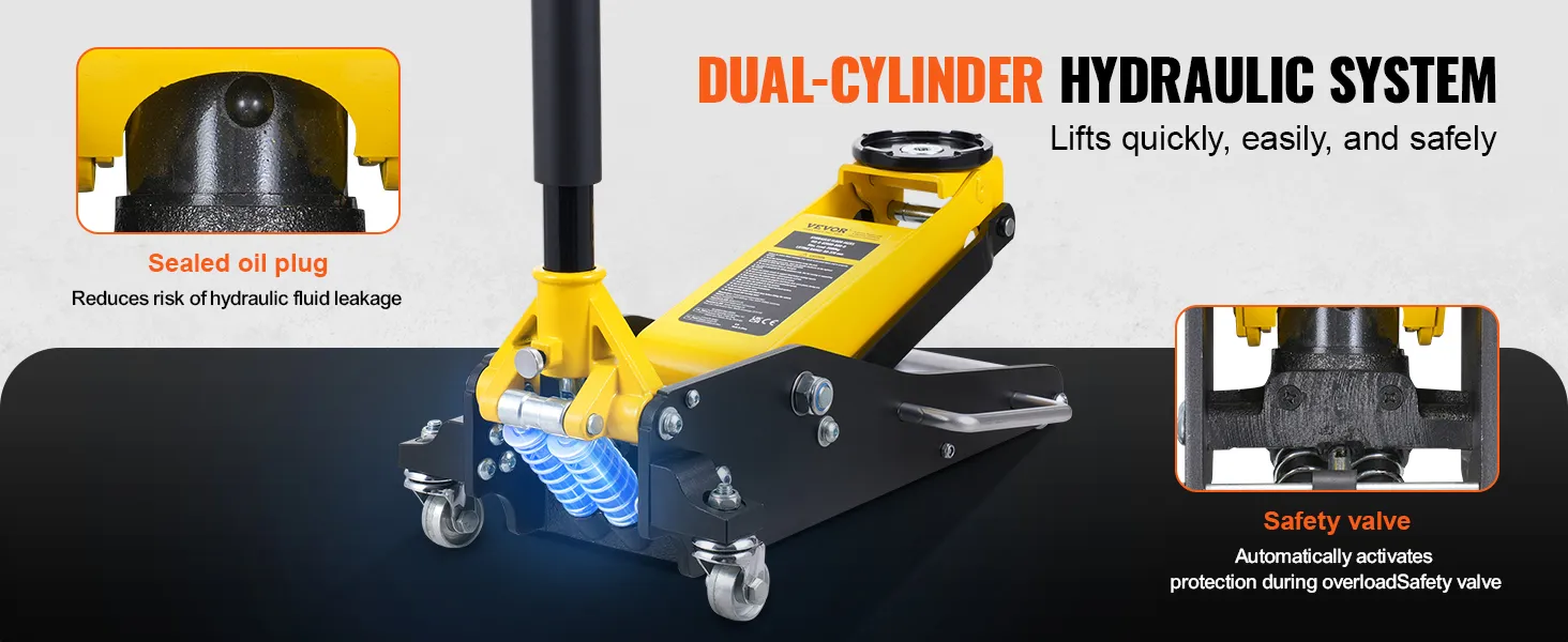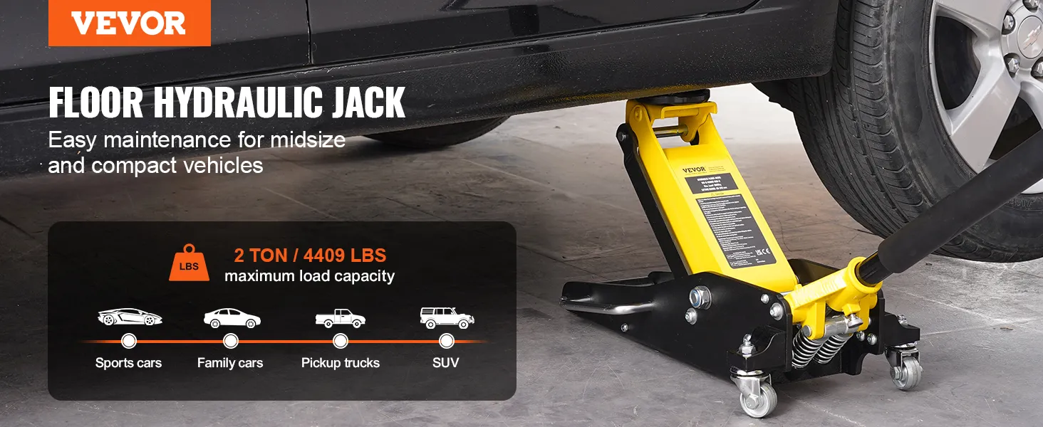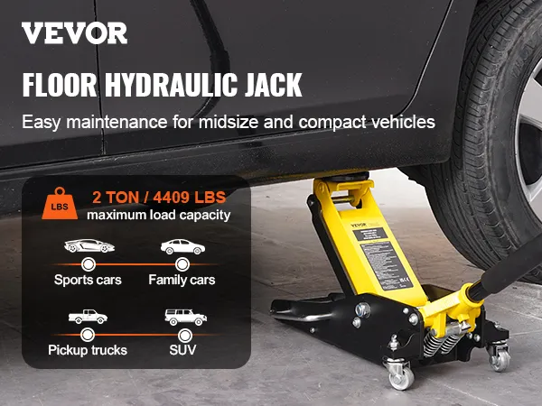 De hydraulische krik kan auto's met een gewicht tot 2 ton heffen, waardoor hij geschikt is voor veelgebruikte sedans en SUV's.