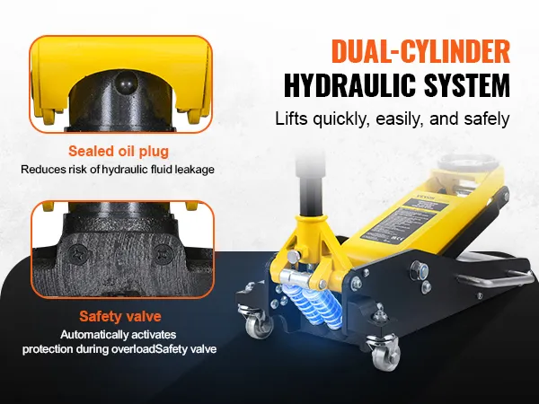Als u de krik met laag profiel vaak moet gebruiken, kunt u dankzij het dubbele cilindersysteem sneller zware voorwerpen tillen. Het ontwerp is stabieler en minimaliseert het risico op kantelen of instabiliteit bij het tillen.