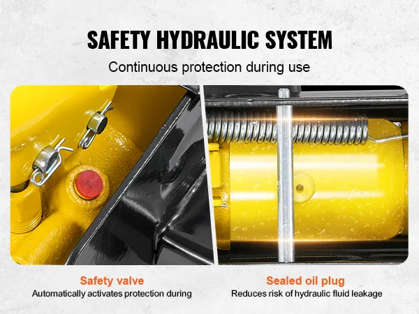 Veiligheidssysteem: onze hydraulische krik is uitgerust met een betrouwbare veiligheidsklep die bij overbelasting wordt geactiveerd om schade of letsel te voorkomen. De cilinder is robuust en afgedicht om lekkages te minimaliseren en problemen zoals verminderd laadvermogen of plotseling wegzakken of kantelen van het voertuig als gevolg van olieverlies te voorkomen.