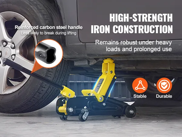 DUURZAME IJZERCONSTRUCTIE: Deze kleine ijzeren krik met gelast frame biedt uitstekende duurzaamheid en corrosiebestendigheid. Het is stabieler dan lichtgewicht materialen en vermindert het risico op wiebelen of vervorming. Ideaal voor autoreparaties, industriële productie of overal waar zware belastingen of hoge drukkrachten nodig zijn. Het koolstofstalen handvat is versterkt en verdikt om breuk tijdens het tillen te voorkomen.
