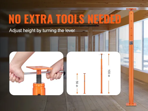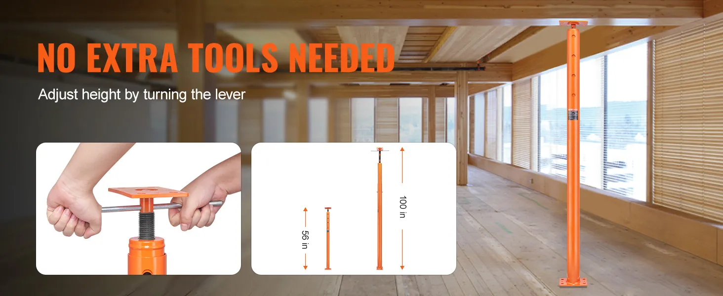 Adjustable Height Design: Need flexibility? This basement floor jack features an adjustable height design. It adjusts from 56 to 100 in/142.24 to 254 cm, so you can find the perfect height for your needs.