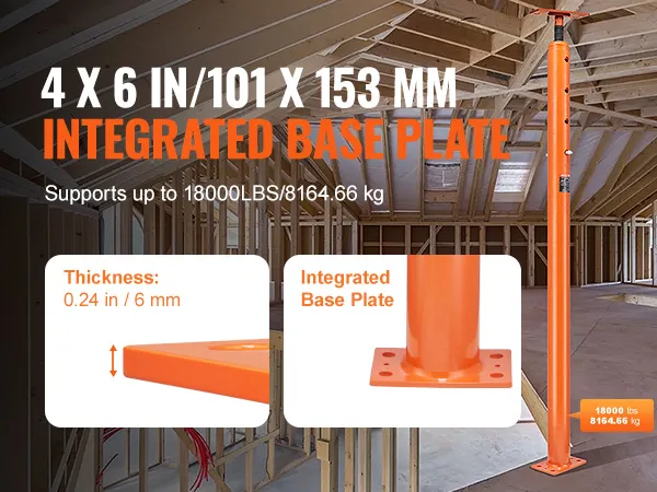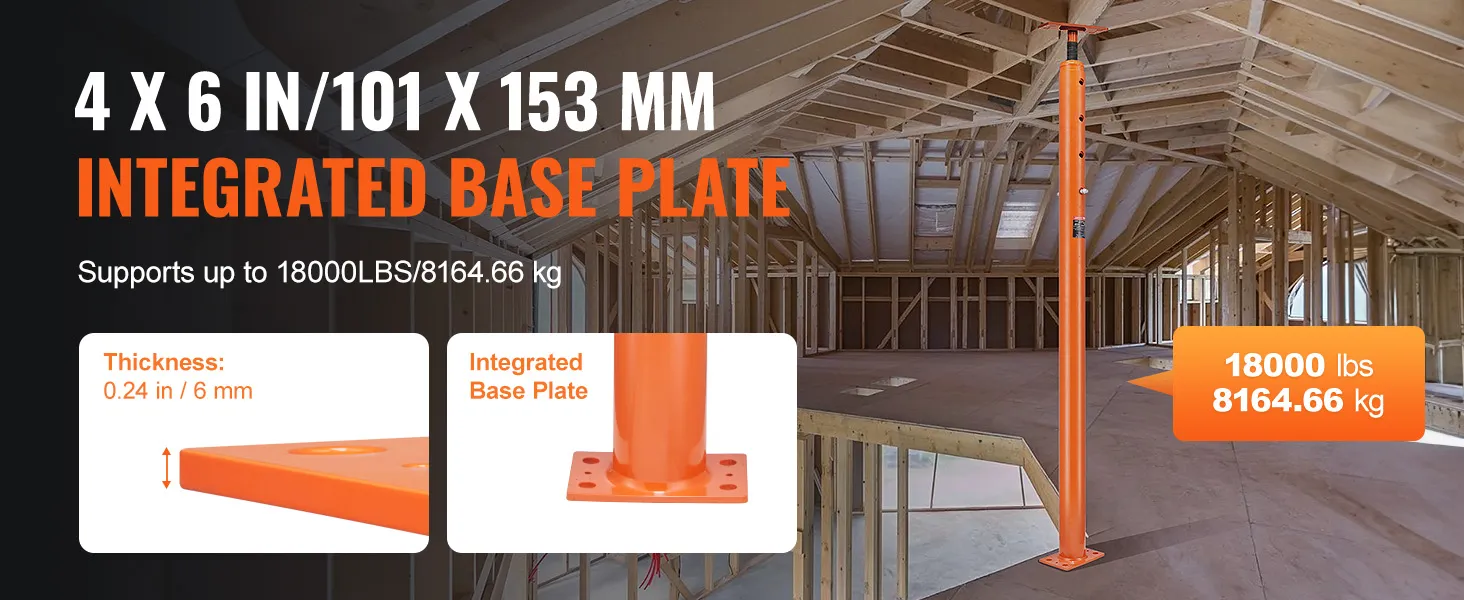 Integrated Welded Base Plate: The adjustable floor jack's base plate is seamlessly welded to the pipe with an integrated welding process. This eliminates the need to fix the base plate to the pipe, making installation a snap without extra steps.