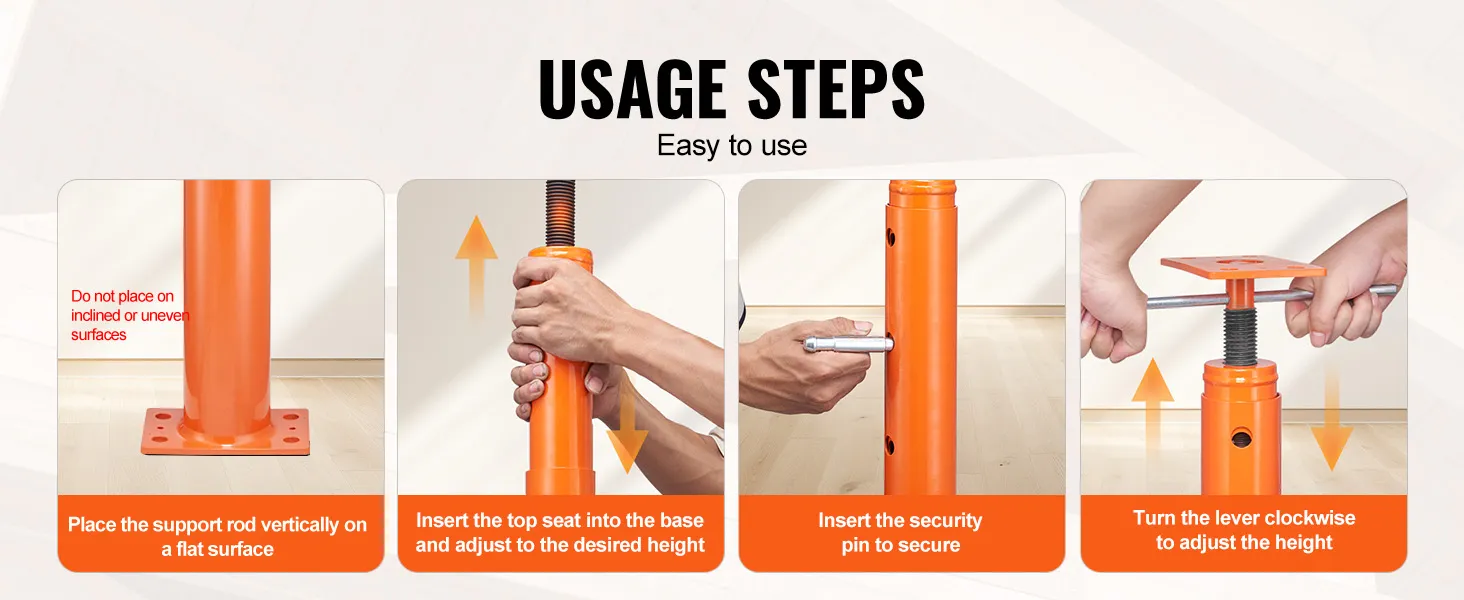 Simple Operation: Adjusting the height of the basement jack is a breeze—just rotate the lever without the need for additional tools. Quick and easy! Plus, it comes with two lock pins for safer locking.