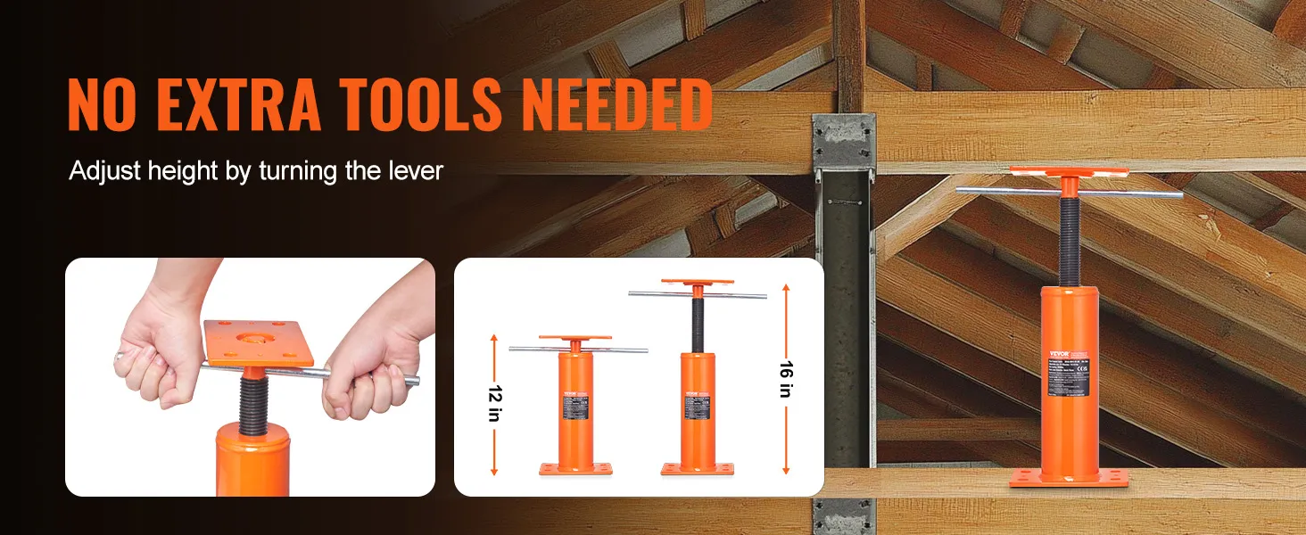 Versatile Application: Our floor joist jack boosts an excellent load capacity and unique adjustable height design. Ideal for temporary support in various places like beams, patios, and construction—this jack does it all!