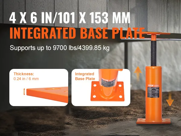 Integrated Welded Base Plate: The adjustable floor jack's base plate is seamlessly welded to the pipe with an integrated welding process. This eliminates the need to fix the base plate to the pipe, making installation a snap without extra steps.