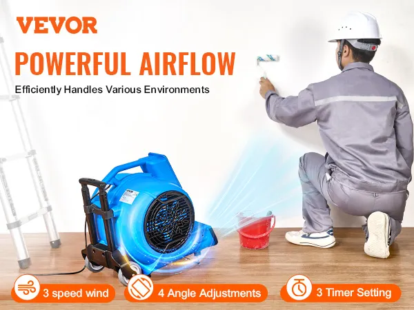 3 Blow Speeds: Power: This carpet dryer offers three adjustable airflow options. With its high-velocity airflow, our blower fan can effectively cool, ventilate, exhaust, and dry a space. It brings in fresh air, making you feel cool and relaxed.