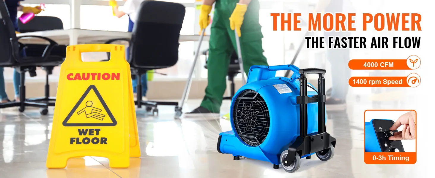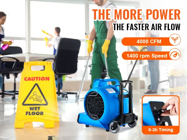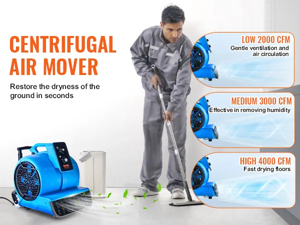 Ground blower, medium-low-high three adjustable, wind speed as you like. Within seconds, the floor is as dry as ever, and comfortable living is at your fingertips.