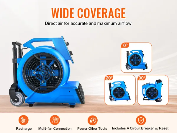 Adjust to Any Position: 0°, 20°, 90° four adjustable blow angle allow you to direct the airflow wherever you need it the most, whether it's on the floor, ceiling, or wherever you live, work, and exercise.