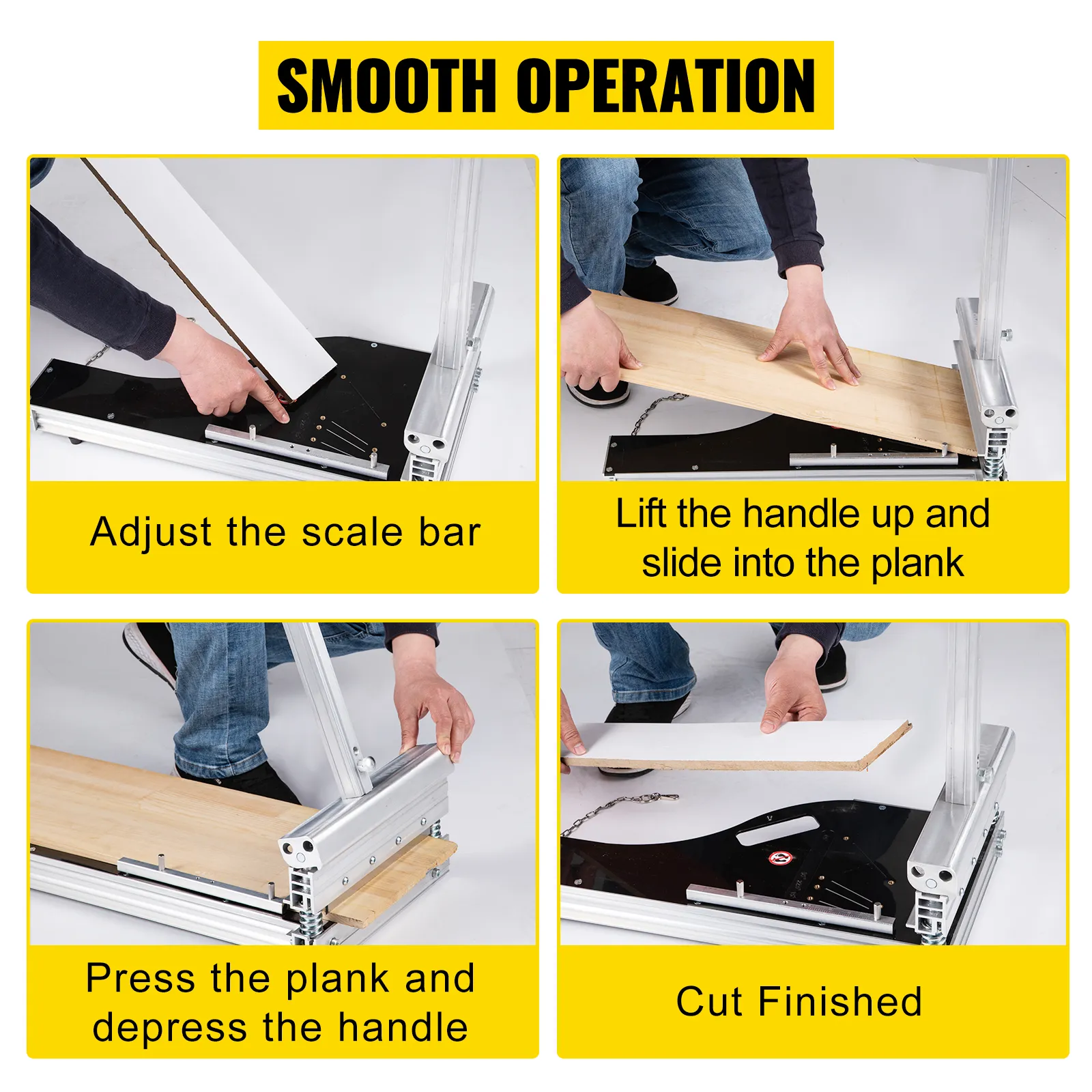 • Soepele Bediening: Het wetenschappelijke structuurontwerp van de laminaatvloersnijder en het staal, aluminium, plastic en andere materialen die erin worden gebruikt, zorgen voor een soepele werking. Het kan u helpen uw werkefficiëntie aanzienlijk te verbeteren.