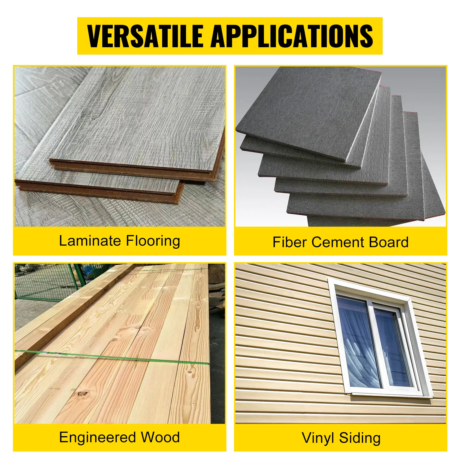 • Brede Toepassing: Deze laminaatsnijder kan verschillende materialen snijden, waaronder laminaatvloeren, vezelcementplaten, bewerkt hout en vinylbeplating. Het is een efficiënt hulpmiddel voor woningverbetering en workshops.