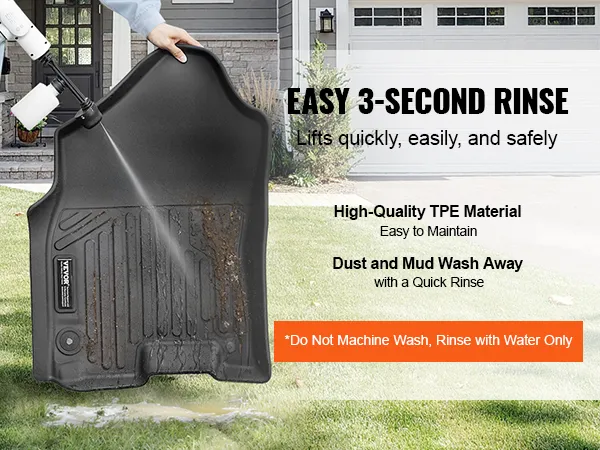 For daily maintenance, simply rinse with water to remove dust and debris. Even heavy dirt or mud can be washed away with ease. Note: Do not machine wash. These floor liners are designed for quick and hassle-free cleaning, making maintenance a breeze.