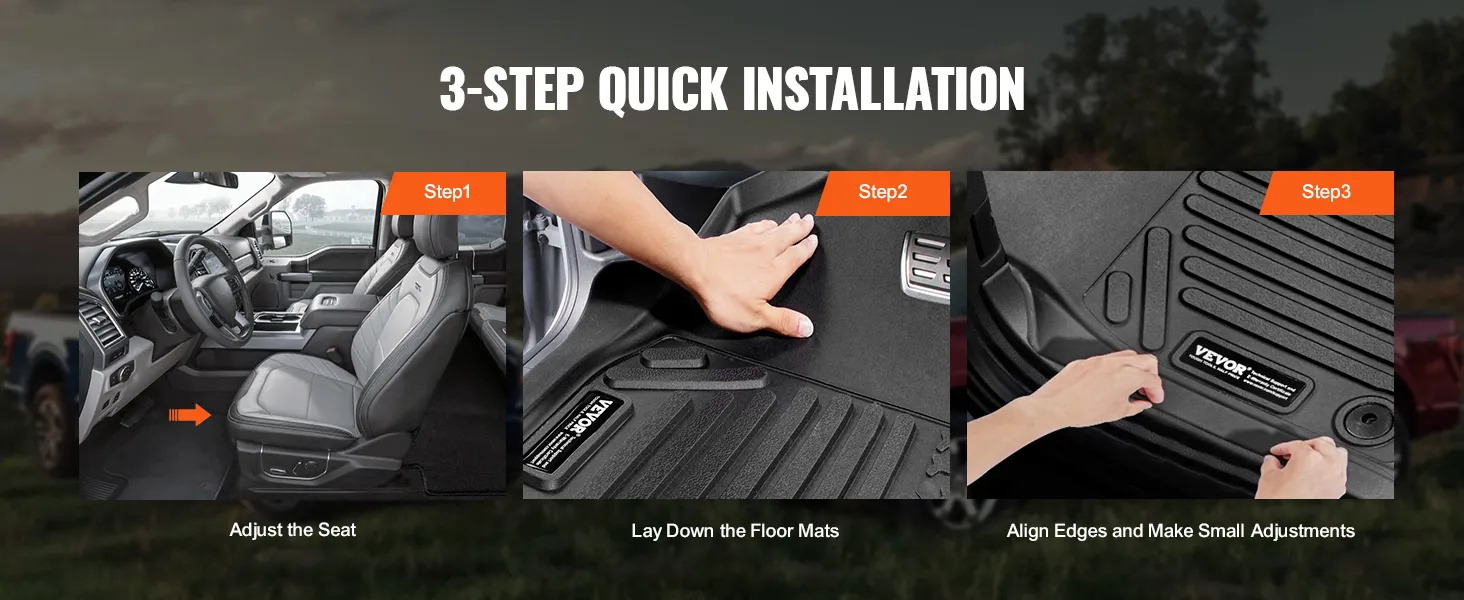 Installing these floor mats is a simple and straightforward process. Just follow the instructions in the manual to complete installation in three easy steps. No professional help is needed—even a beginner can do it alone without any hassle.
