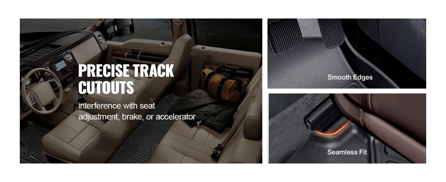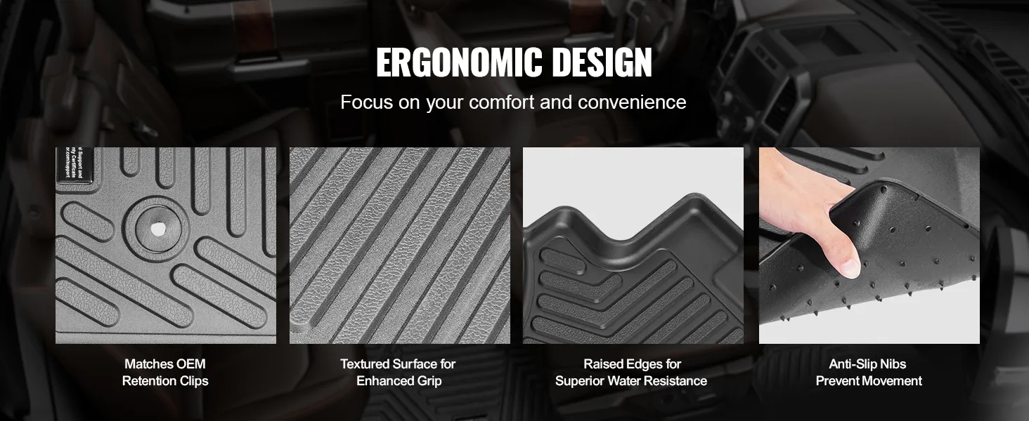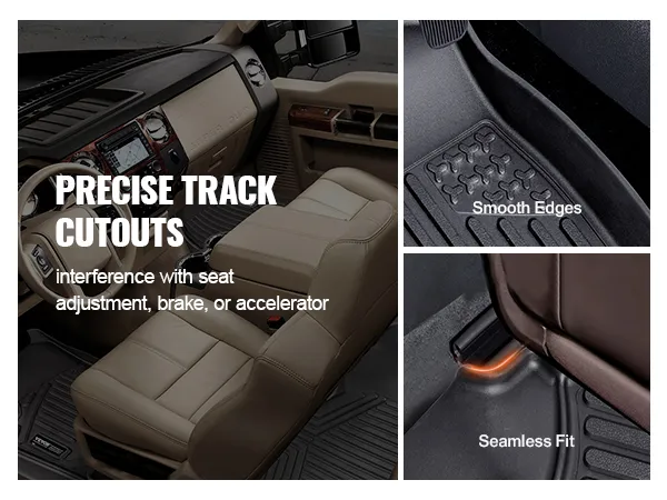 Duurzaam materiaal: Gemaakt van hoogwaardig TPE-materiaal, bieden de voeringen op de voorste en tweede rij uitstekende slijtvastheid en zijn ze bestand tegen wrijving en slijtage, zelfs bij langdurig gebruik zonder schade. Ze zijn gemakkelijk schoon te maken, zeer duurzaam en flexibel, zodat ze na verloop van tijd niet zullen krullen of kromtrekken.