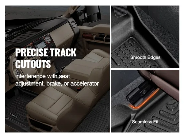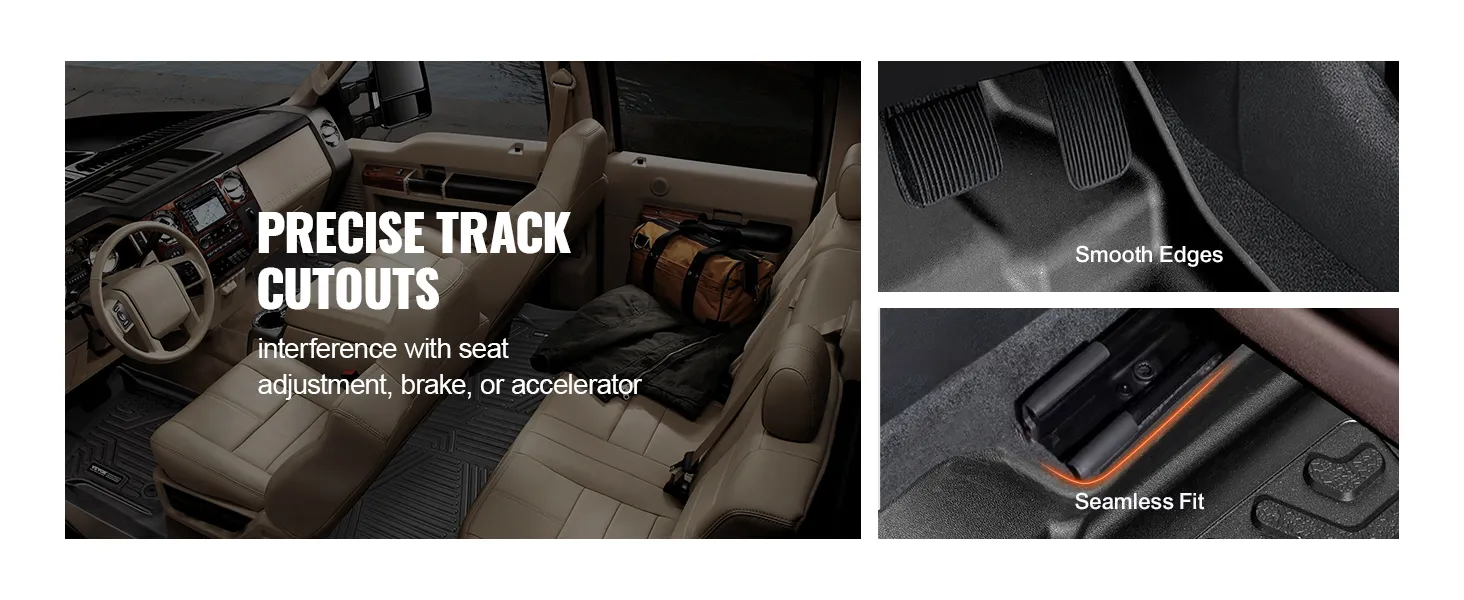 These front & 2nd row liners are perfectly aligned with your vehicle's structure, leaving precise track cutouts that won't interfere with seat adjustments. They do not obstruct the brake or gas pedals, providing a secure driving experience.