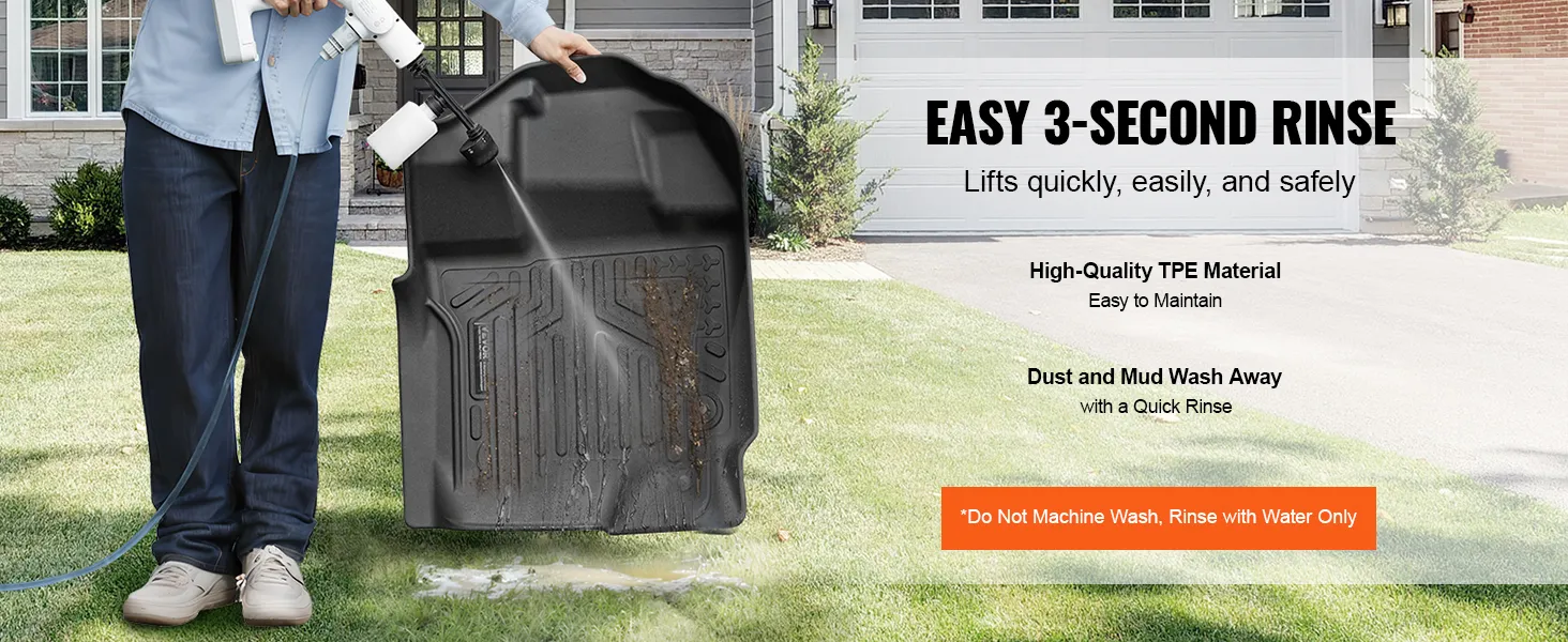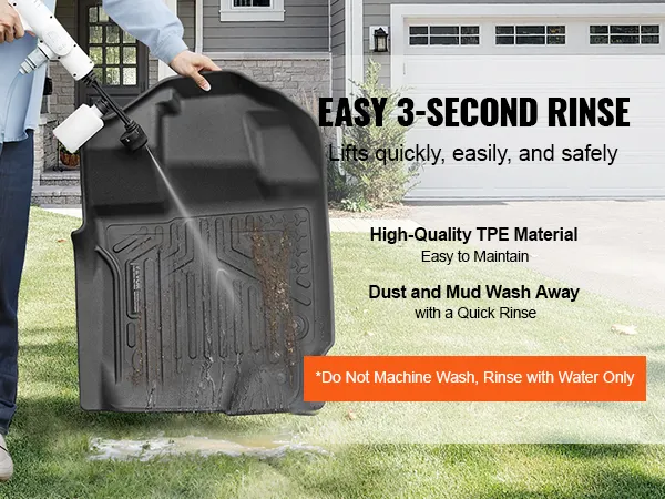 For daily maintenance, simply rinse with water to remove dust and debris. Even heavy dirt or mud can be washed away with ease. Note: Do not machine wash. These floor liners are designed for quick and hassle-free cleaning, making maintenance a breeze.