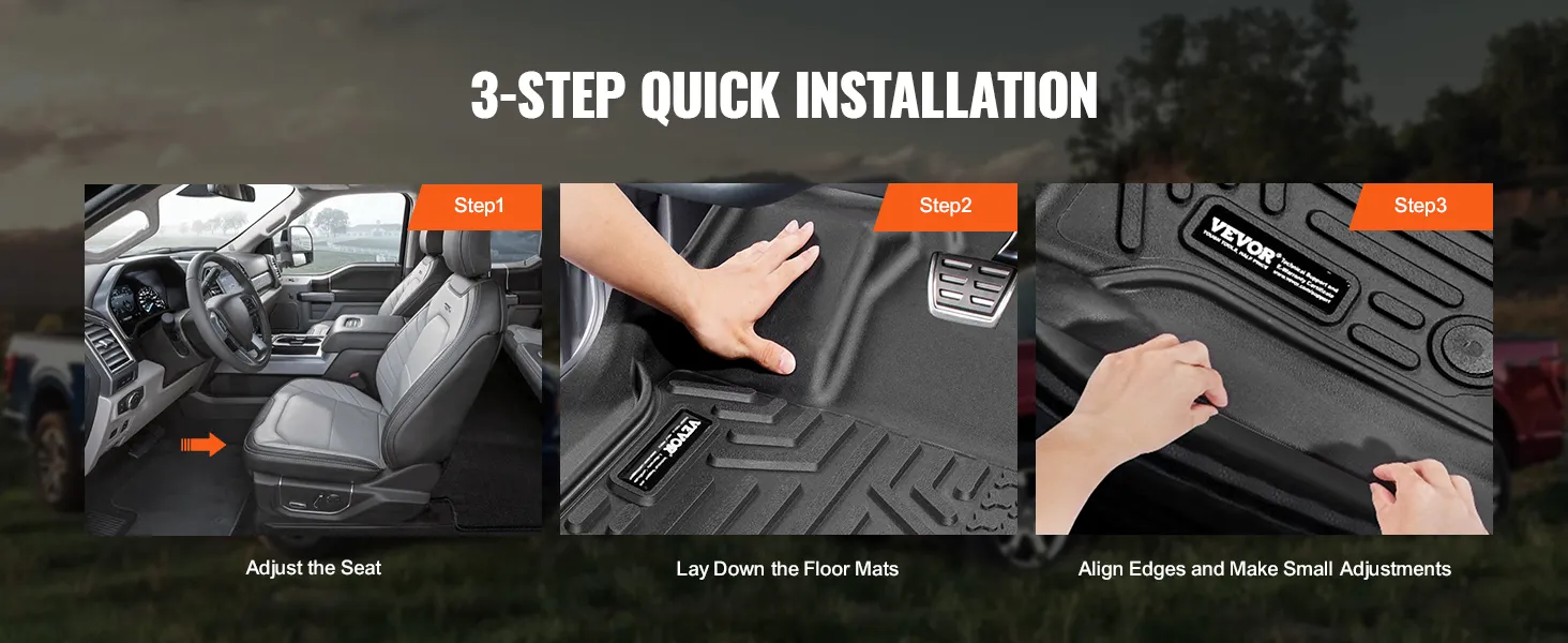 Installing these floor mats is a simple and straightforward process. Just follow the instructions in the manual to complete installation in three easy steps. No professional help is needed—even a beginner can do it alone without any hassle.