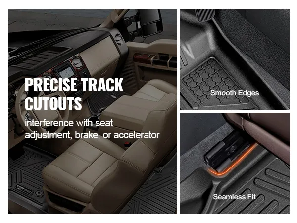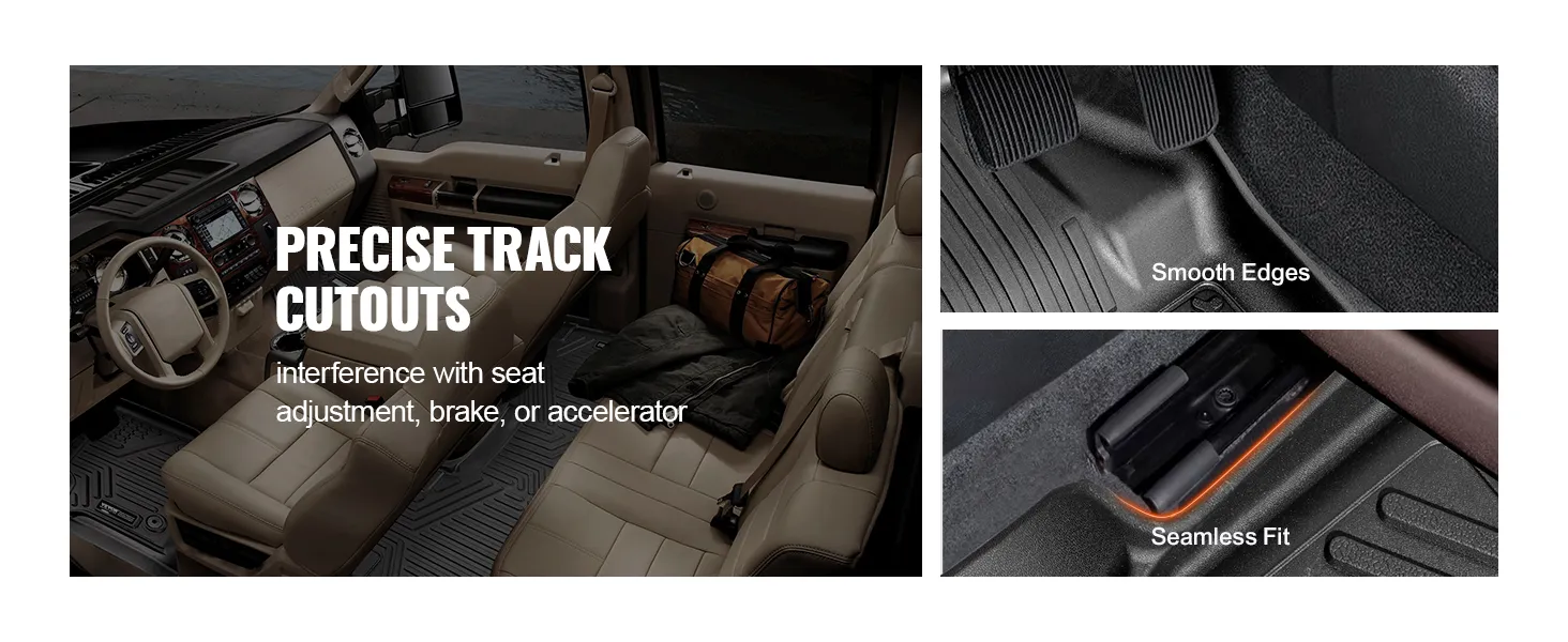 These front & 2nd row liners are perfectly aligned with your vehicle's structure, leaving precise track cutouts that won't interfere with seat adjustments. They do not obstruct the brake or gas pedals, providing a secure driving experience.