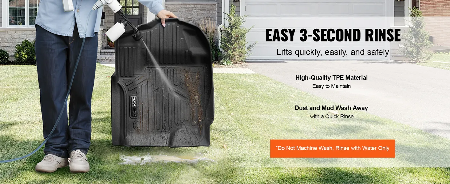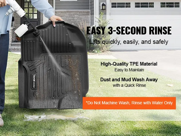For daily maintenance, simply rinse with water to remove dust and debris. Even heavy dirt or mud can be washed away with ease. Note: Do not machine wash. These floor liners are designed for quick and hassle-free cleaning, making maintenance a breeze.