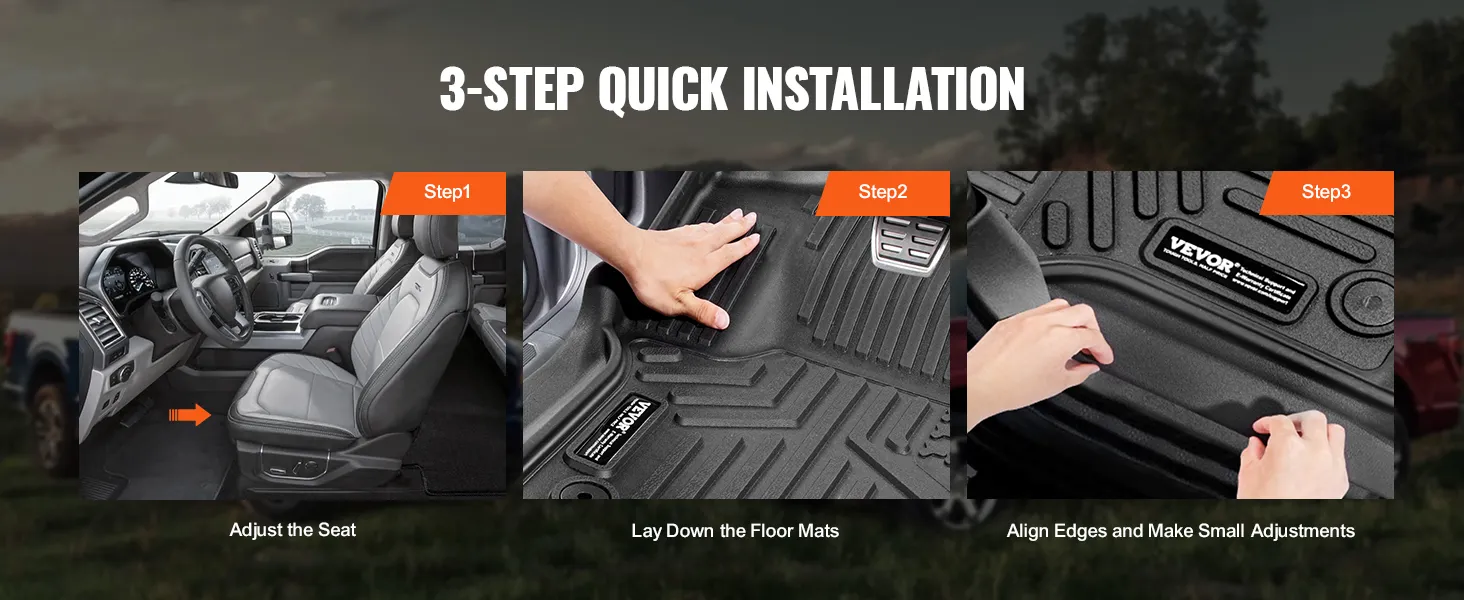 Installing these floor mats is a simple and straightforward process. Just follow the instructions in the manual to complete installation in three easy steps. No professional help is needed—even a beginner can do it alone without any hassle.