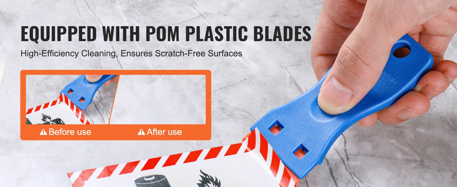 Our blades are made of POM, a wear-resistant, high-hardness plastic material that effectively cleans remnants without leaving scratches. Suitable for cleaning stickers from refrigerators, car windows, glass, and metal surfaces. Upgrade your cleaning routine today!