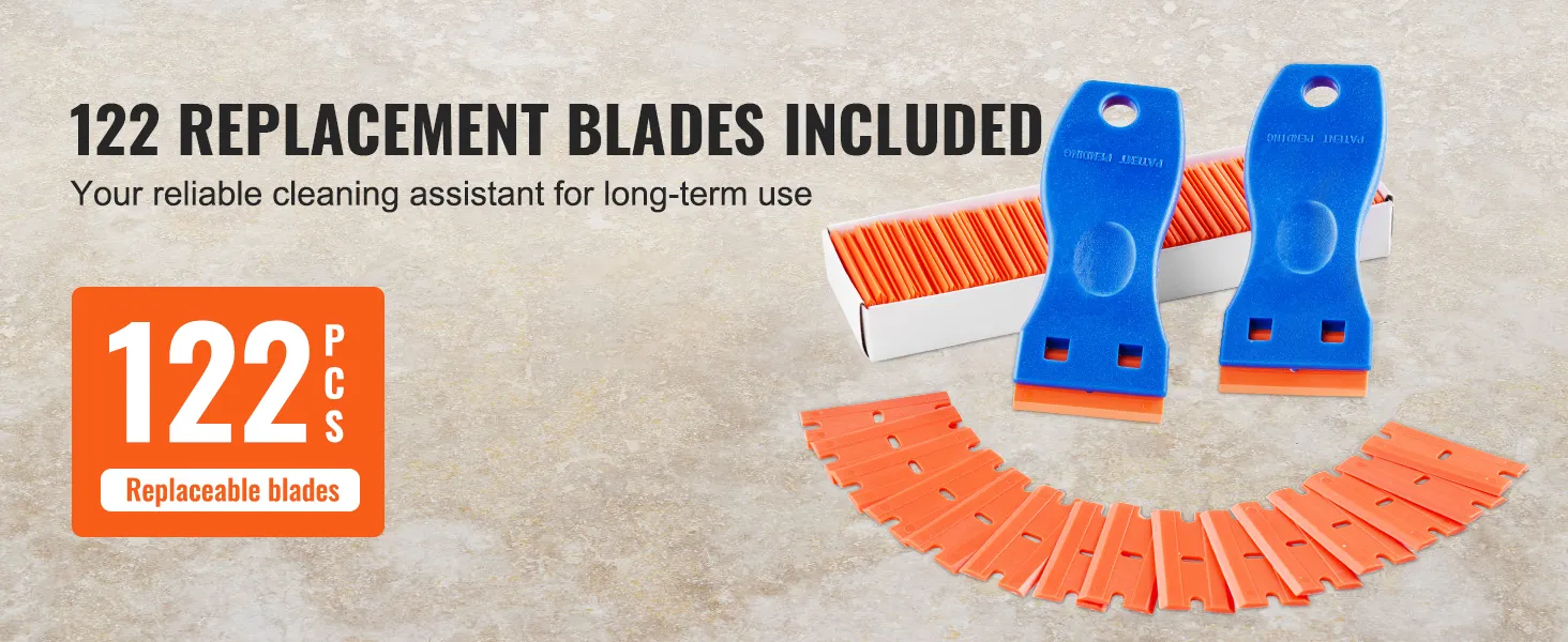 Our razor blade scraper tool is equipped with durable 122-piece spare blades, which can easily cope with various cleaning problems and make your floor look brand new. Get ready to experience effortless cleaning!