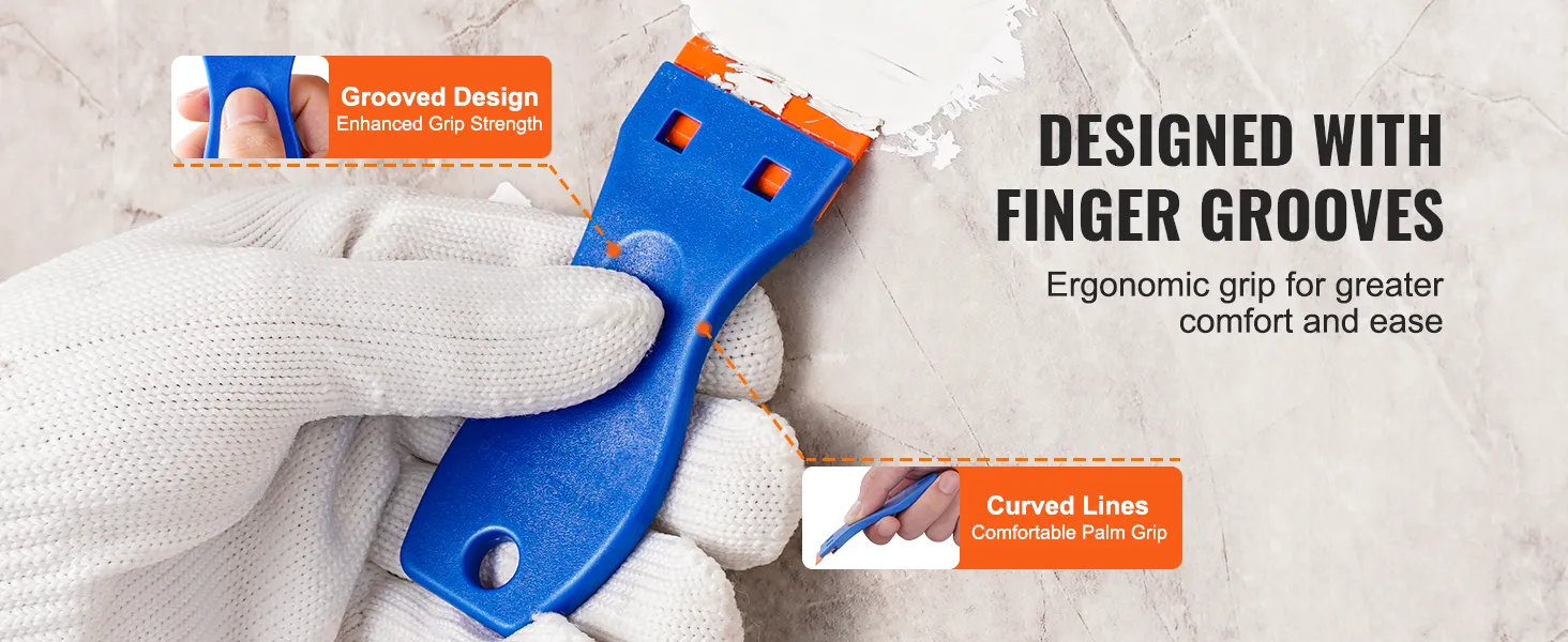 Elevate your cleaning comfort with our razor blade scraper, designed to fit your hand and completely contour your grip. Besides, the groove design in the handle center enhances your power fingers' hold, giving you maximum control during every cleaning.