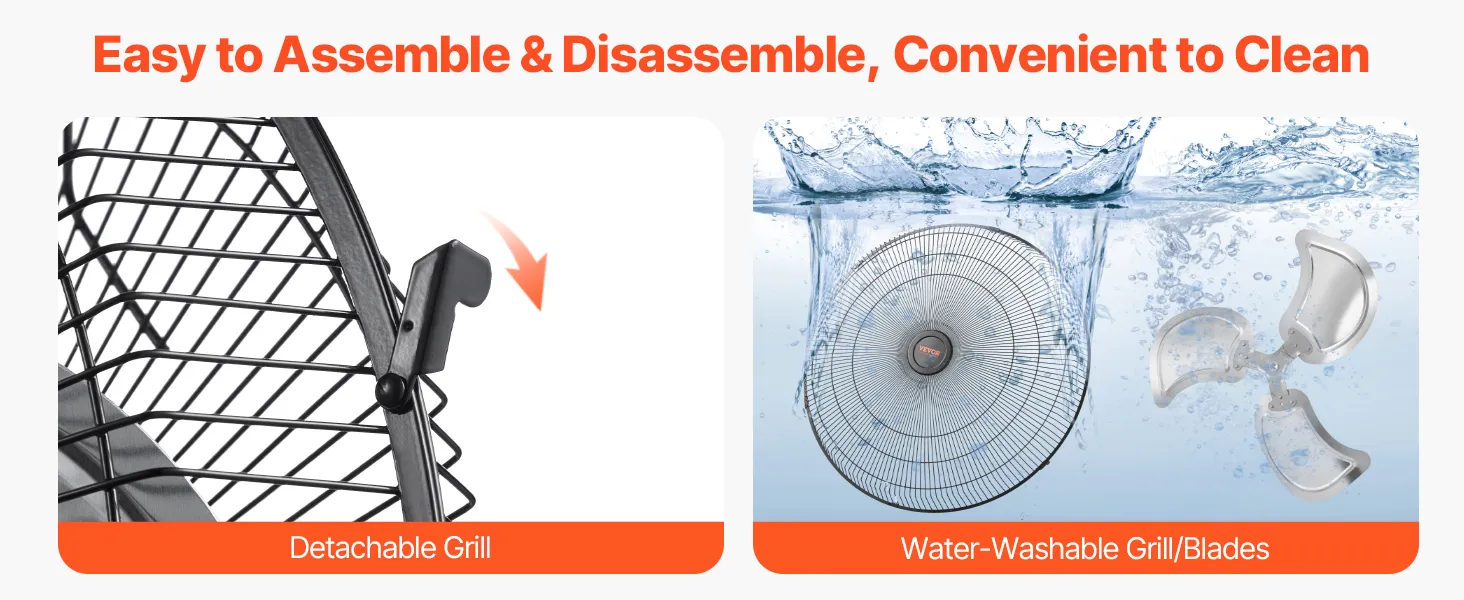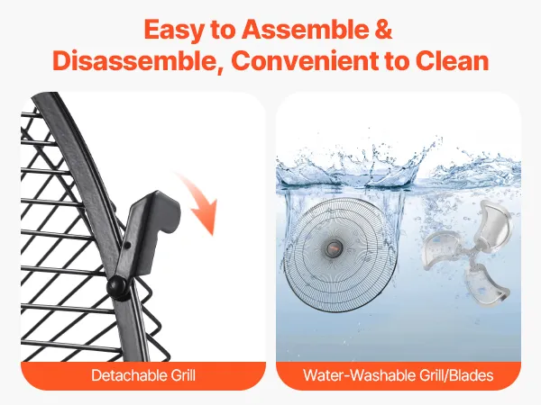 Our versatile metal fan comes pre-assembled. Just attach the base, and you're ready to go. Regular disassembly and cleaning are simple, and our user manual provides step-by-step instructions. Easily remove parts for deep cleaning, preventing dust buildup and ensuring optimal airflow.