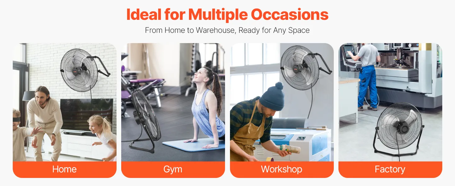 Our fan delivers powerful yet quiet airflow, making it a great choice for both home and commercial spaces such as industrial factory, office, shop, bedroom, workshop and garage. It efficiently cools and ventilates, ideal for homes, businesses, or agricultural environments.