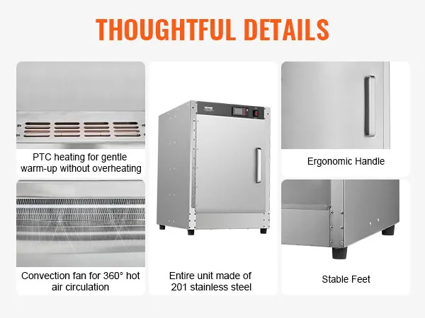 Sturdy and Durable Construction: Made of thickened 201 stainless steel, this hot box is strong and resistant to deformation. The convenient magnetic door ensures a tight seal to retain heat. The stable design allows easy transitions from countertop to floor without compromising security or stability.