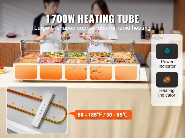 Fast Heating, Lasting Warmth: This impressive food warmer with glass cover comes with a powerful 1700-watt stainless steel heating tube that rapidly warms up your food to maintain its hot and delicious flavors. You can adjust the temperature output to suit your preference, ranging between 86-185°F / 30-85°C, thanks to the temperature controller.